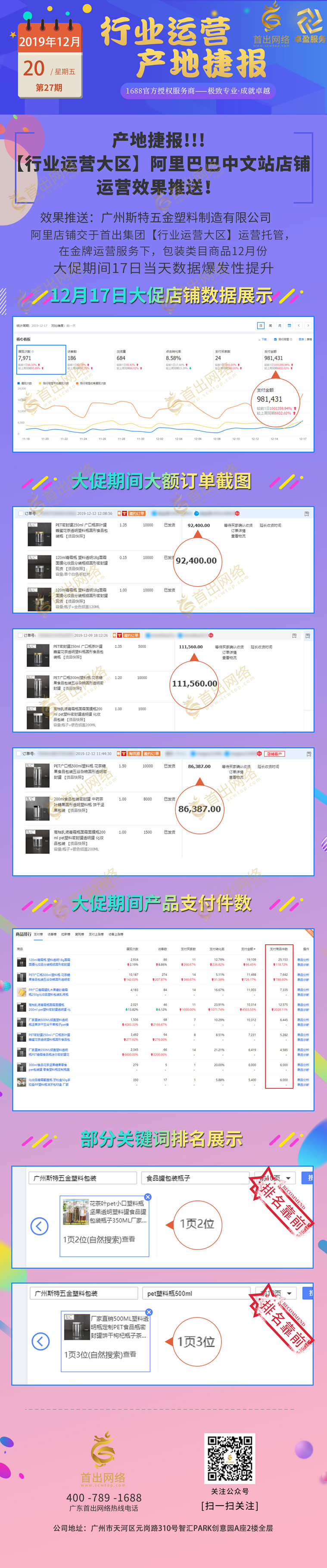 【首出头条】阿里巴巴店铺代运营效果播报:第20期